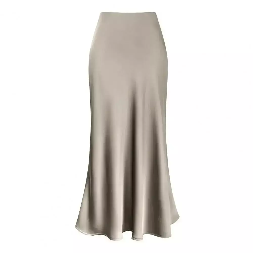 Estilo: saia midi feminina, cintura alta, corte em A